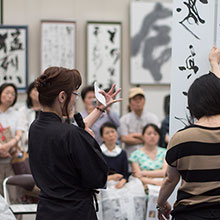 他の先生方がその作品自体を解説するのに対し、それに加えて線や文字の流れなど、自分たちが大切にしている【書】、つまり故・木村知石先生、故・劉蒼居先生、そして座本大汪先生が求めている書が、何を大切にしながら創造されているのかを、懸命に伝えようとされていました。
